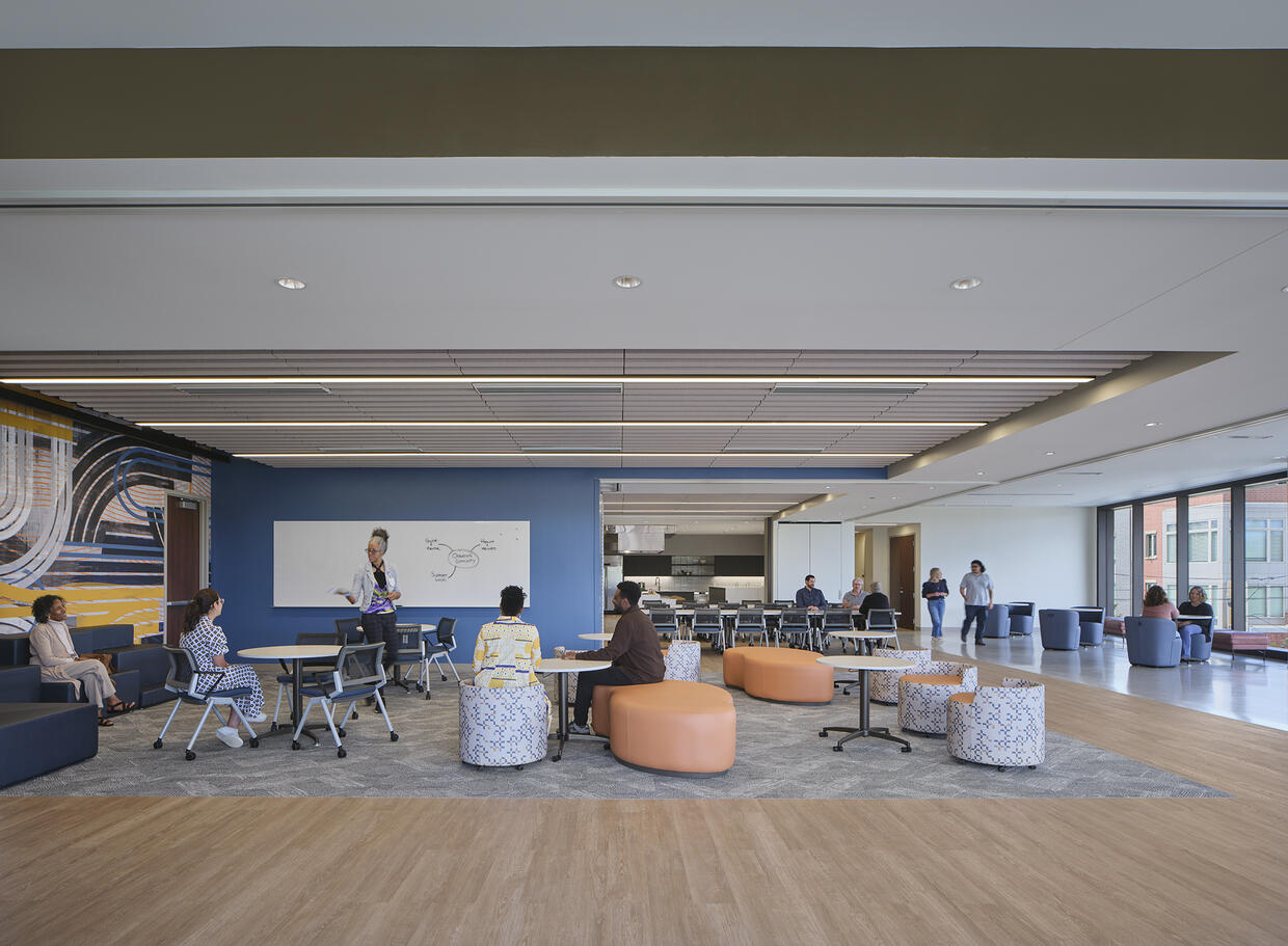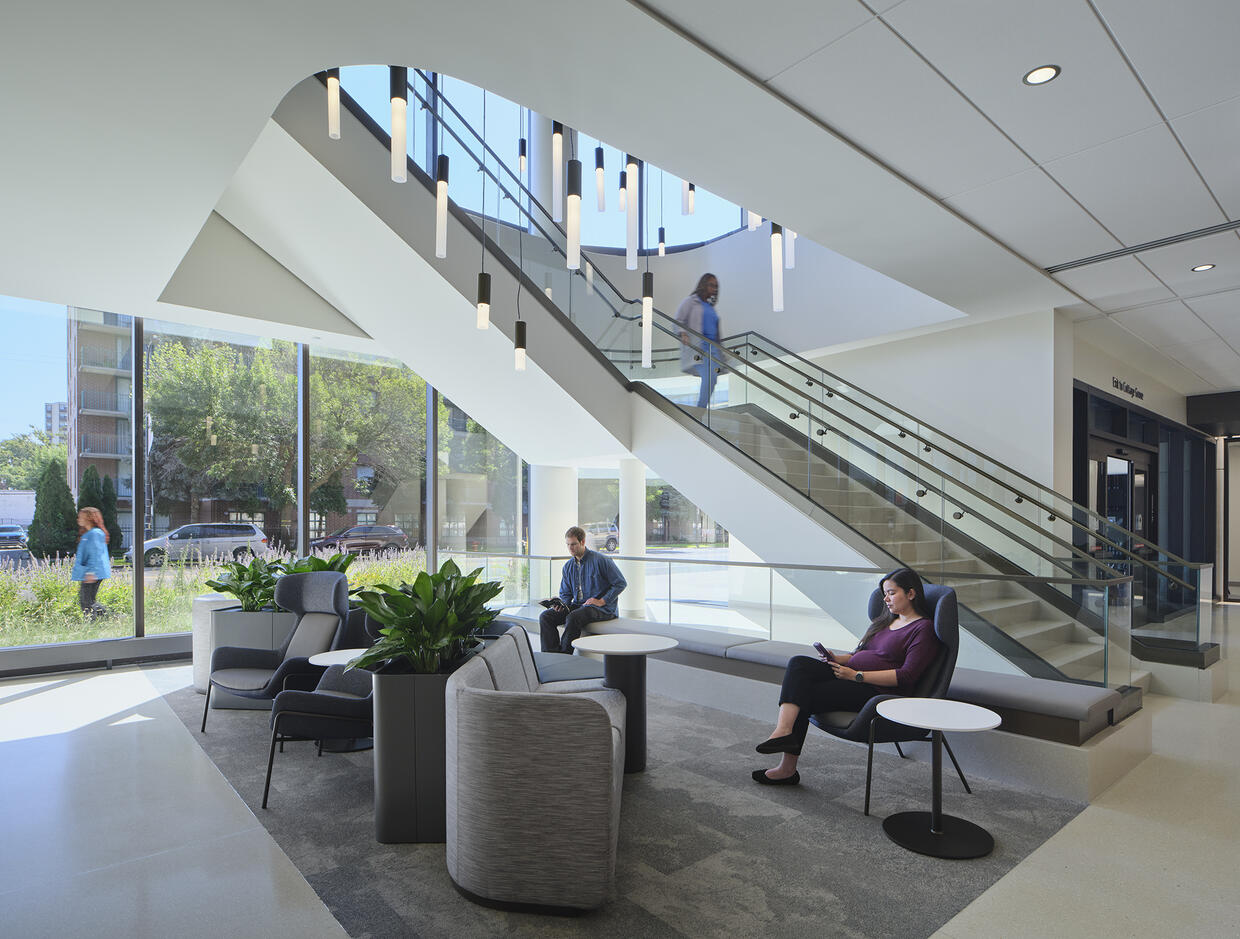 Furthering Northwestern Medicine’s commitment to support communities and improve health outcomes, is a 252,000 sf, five-floor outpatient care center in the Bronzeville neighborhood. Expected to serve more than 50,000 patients from the nearby community each year, the facility features an immediate care center, primary and specialty care, imaging center, pharmacy and diagnostic services, cancer center, behavioral health services, and community health services. The center will prioritize areas for the community, including multipurpose spaces, event spaces, a demonstration and teaching kitchen, and a room for fitness classes. Mental health services will also be available at the facility. With a keen focus on the community and inclusivity, the development is projected to bring 1,000 jobs to the community for the build and 100 permanent jobs as clinical services come online.