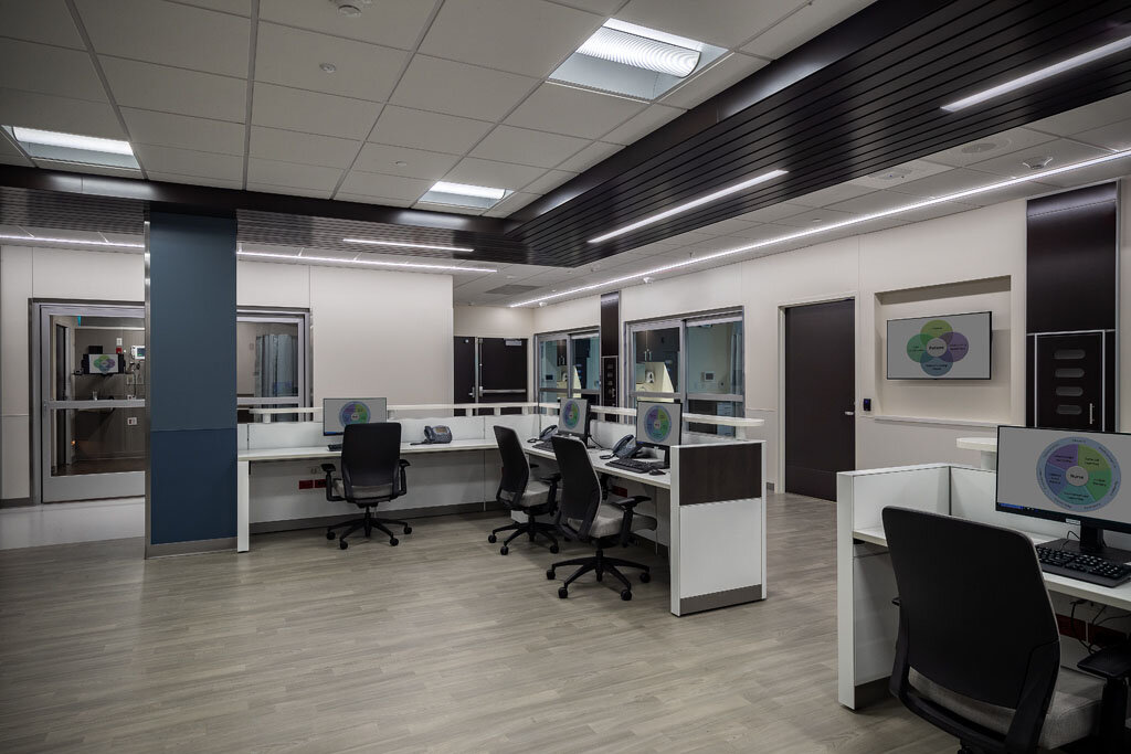 In an effort to increase capacity in the emergency department, Rush Copley Medical Center hired Power to build a single-story vertical expansion atop the existing ED department for a new clinical decision unit. Before starting the 19,000 sf expansion, the project team added reinforcement to the existing steel columns on the first floor around active patient areas and relocated an ultrasound room that had interference with planned demolition. Doing as much enabling work as possible ahead of the official construction start, we were able to maintain the hospital's aggressive phasing schedule.